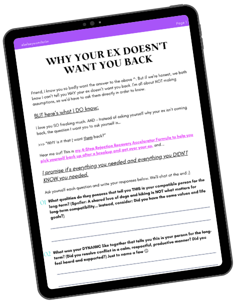 Get access to my FREE guide, where I shareΒ my 4-Step Rejection Recovery Accelerator Formula to help you pick yourself back up after a breakup and get over your ex.Β πͺπΌπͺβ€οΈβπ©Ήπ¦
