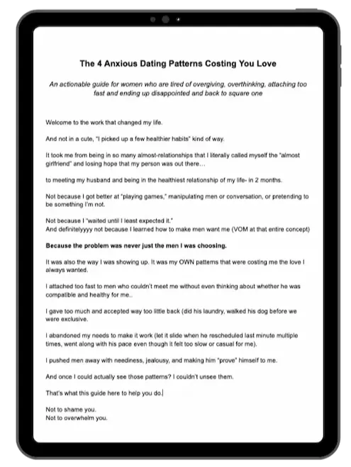 It's a tested, proven framework built on evidence-based psychology and refined after helping 4,000+ women go from “WTF is wrong with dating” to “I can’t believe I found someone this good.”